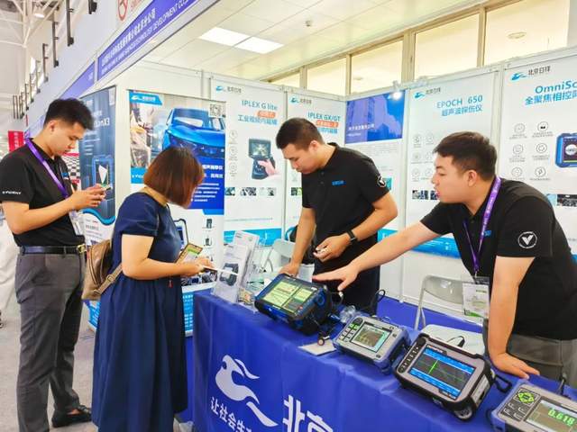 ▲展会现场技术人员为客户演示复材无损检测